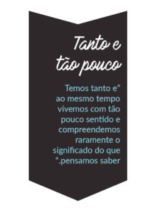 “As relações estão cada vez mais confusas, sejam as do homem com a informação, do homem consigo mesmo e, especialmente, dele com seu semelhante. Pensando bem, somos um reflexo bastante preciso da definição da informação da atualidade: temos tanto e ao mesmo tempo vivemos com tão pouco sentido e compreendemos raramente o significado do que pensamos saber”, reflete o sociólogo inconformado. “A regra geral infelizmente aponta pessoas desnorteadas, informações desencontradas e ineficientes.”
